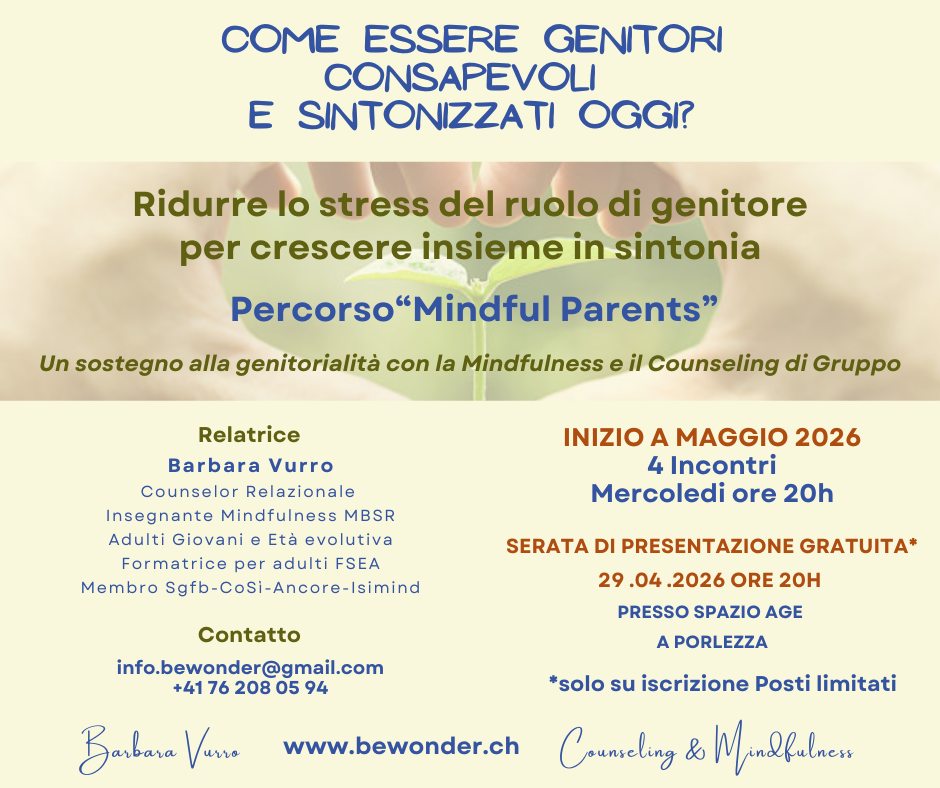 in collaborazione con Associazione Genitori Istituto Comprensivo Porlezza, con i percorsi dedicati a bambini e genitori, per coltivare benessere, consapevolezza ed equilibrio emotivo con l’approccio della Mindfulness.